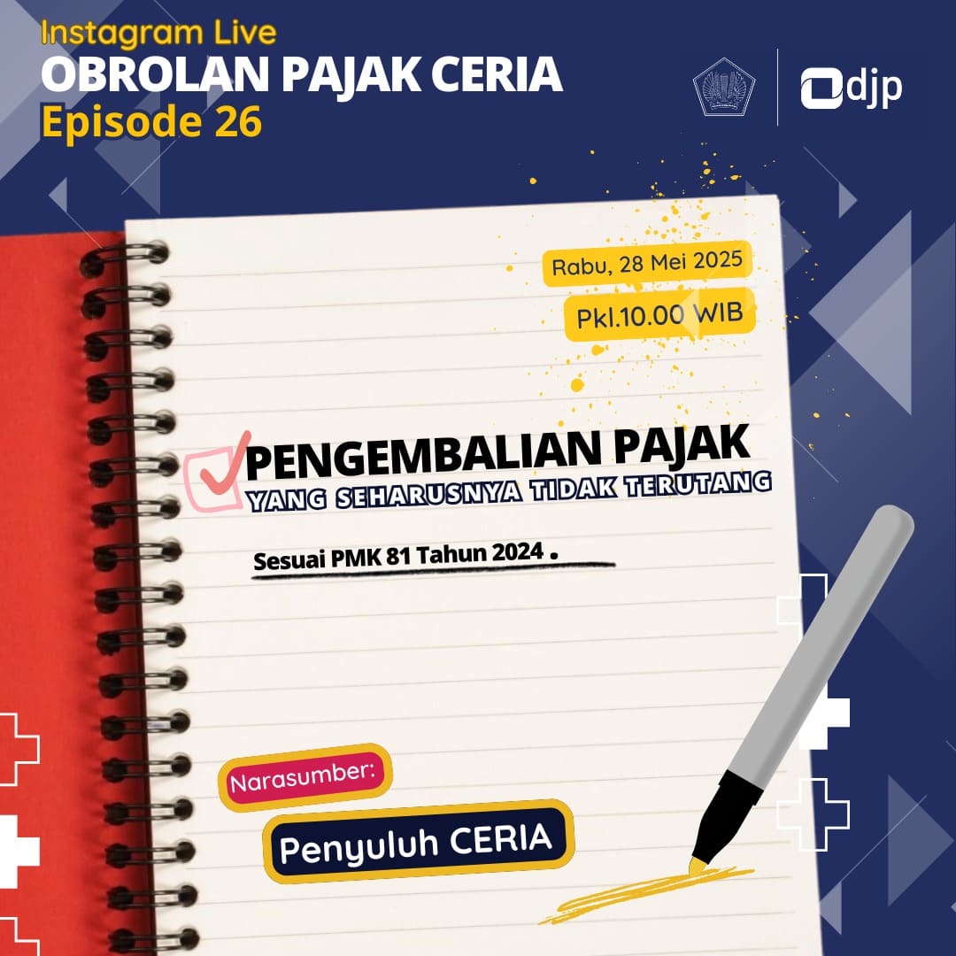 Tema yang mereka angkat kali ini adalah pembahasan mengenai Pengembalian Pajak yang Seharusnya Tidak Terutang, merujuk pada Peraturan Menteri Keuangan (PMK) Nomor 81 Tahun 2024 Tentang Ketentuan Perpajakan Dalam Rangka Pelaksanaan Sistem Inti Administrasi Perpajakan. Menurut mereka, kegiatan ini diselenggarakan sebagai wujud komitmen Direktorat Jenderal Pajak (DJP) dalam memberikan edukasi perpajakan yang proaktif dan relevan bagi masyarakat.