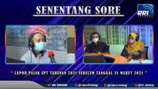 Kantor Pelayanan Pajak (KPP) Pratama Sintang bersama Radio Republik Indonesia (RRI) Sintang melaksanakan siaran langsung radio dan youtube dengan judul Senentang Sore - Lapor Pajak SPT Tahunan 2021 Sebelum Tanggal 31 Maret 2021. Siaran dilaksanakan di Studio RRI Sintang, Sintang (Kamis, 18/3).