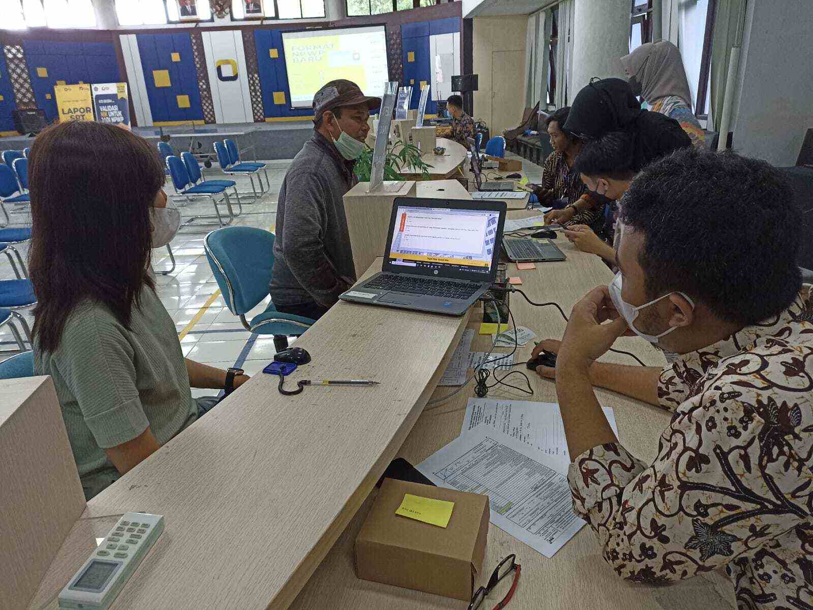 Wajib pajak dari berbagai kalangan termasuk ASN, pegawai swasta, dan pelaku usaha memenuhi loket helpdesk untuk melakukan pelaporan SPT Tahunan dan pemadaman NIK-NPWP.