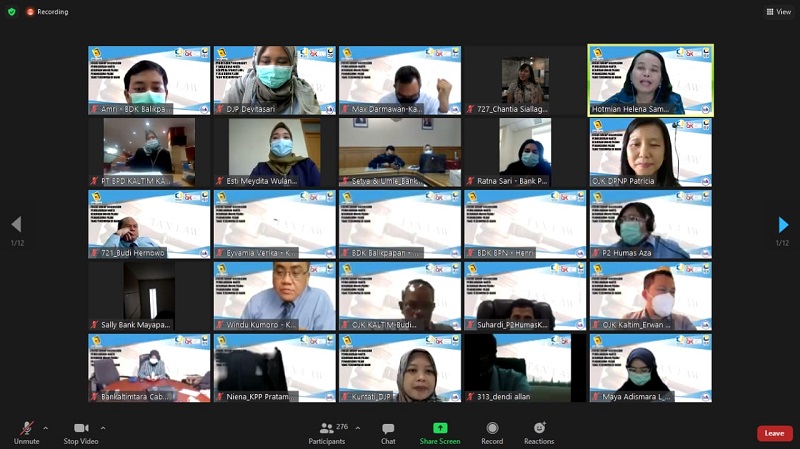 Lebih dari 200 peserta mengikuti kegiatan Focus Group Discussion (FGD) Pemblokiran Harta Wajib Pajak/Penanggung Pajak yang Tersimpan di Bank yang diselenggarakan atas kerja sama Direktorat Jenderal Pajak (DJP), Otoritas Jasa Keuangan (OJK), dan Badan Pendidikan dan Pelatihan Keuangan (BPPK) yang dilakukan secara daring melalui aplikasi Zoom Meeting di Balikpapan (Rabu, 14/4).