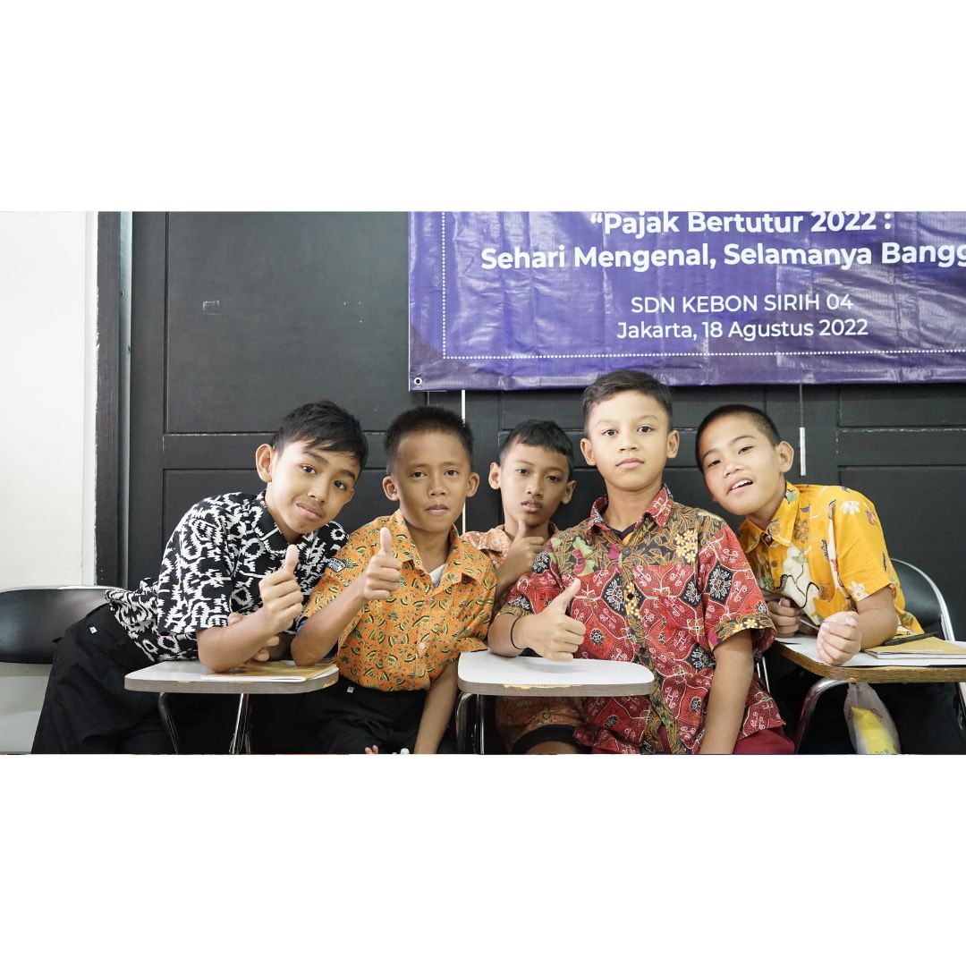 KPP Pratama Jakarta Menteng Satu mengadakan kegiatan Pajak Bertutur secara luring di SDN Kebon Sirih 04 (Kamis, 18/8).