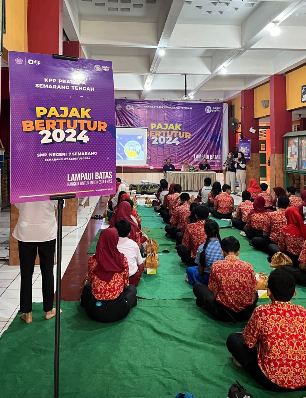 Kantor Pelayanan Pajak (KPP) Pratama Semarang Tengah bekerja sama dengan Sekolah Menengah Pertama (SMP) Negeri 7 Semarang melaksanakan kegiatan Pajak Bertutur di SMP Negeri 7 Semarang, Kecamatan Semarang Tengah, Kota Semarang, Jawa Tengah (Rabu, 7/8).