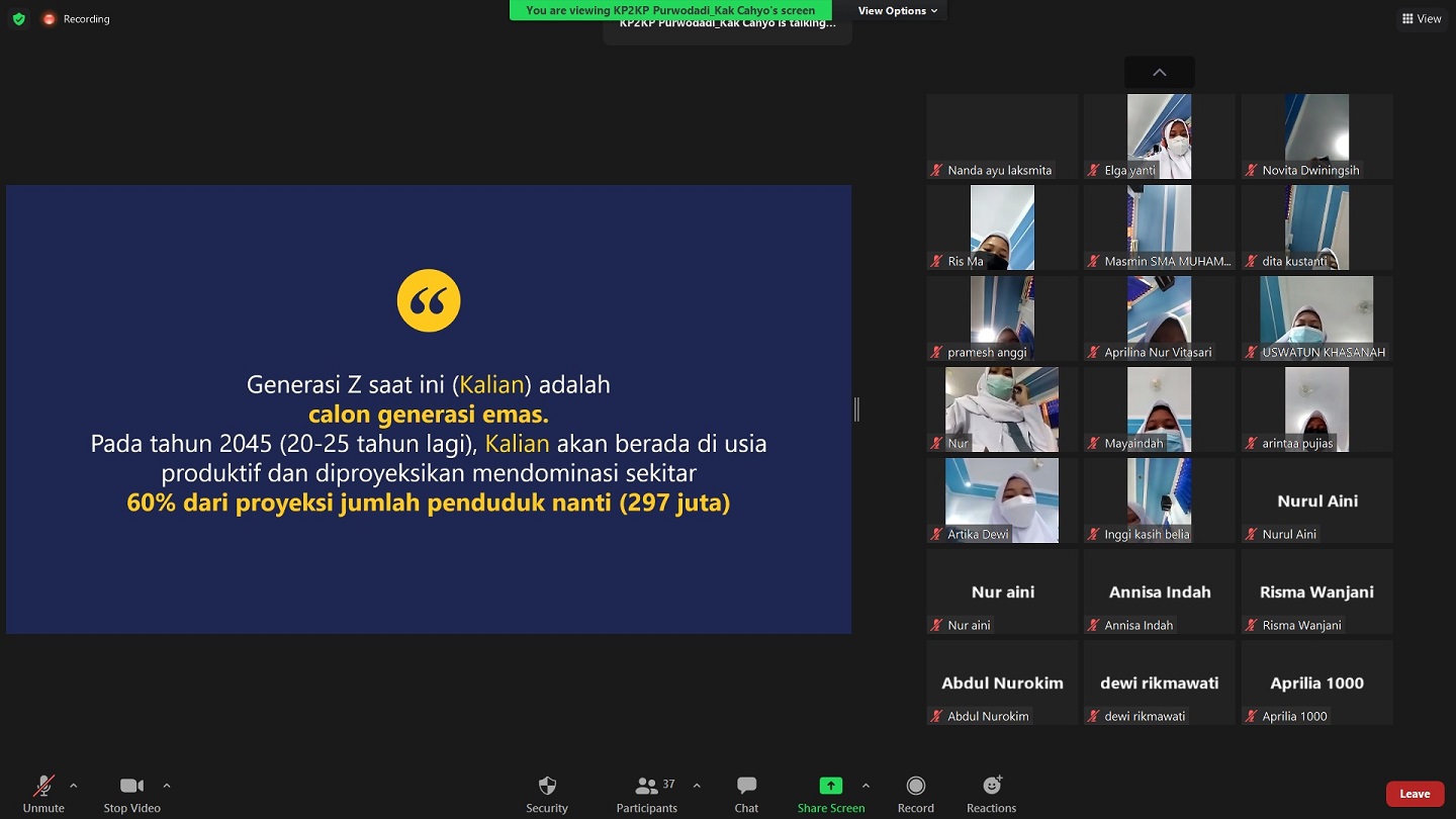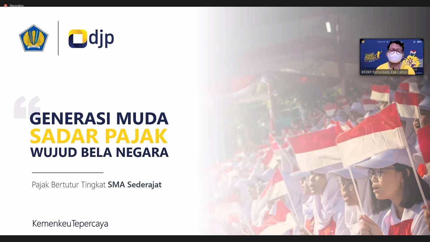 Pegawai Kantor Pelayanan, Penyuluhan dan Konsultasi Perpajakan (KP2KP) Purwodadi melaksanakan kegiatan Pajak Bertutur bersama Sekolah Menengah Atas (SMA) Muhammadiyah Purwodadi secara daring di Purwodadi, Grobogan (Rabu, 25/8).