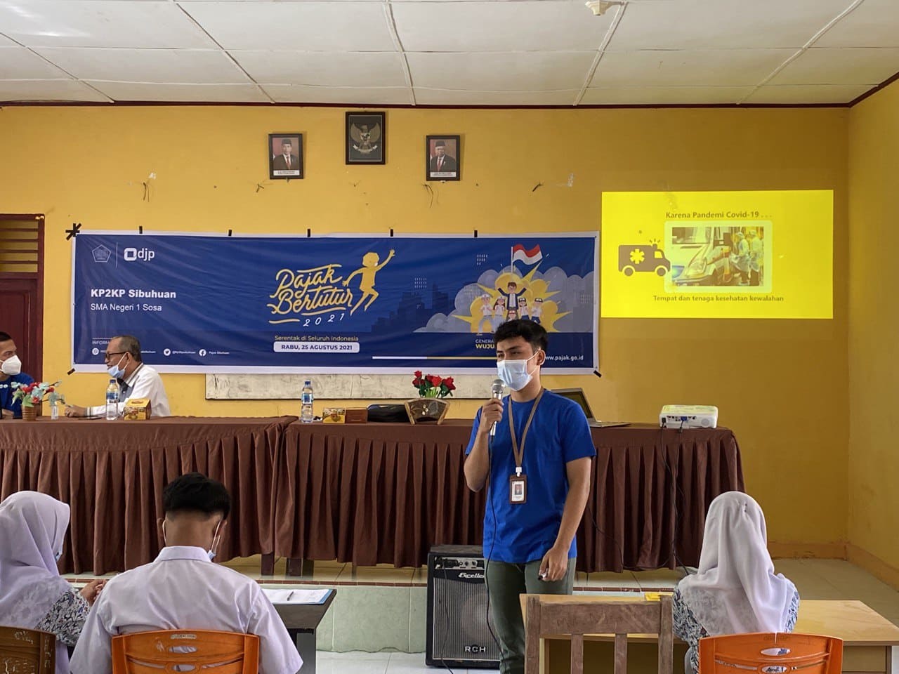 Kegiatan Pajak Bertutur Tahun 2021 yang mengusung tema 'Generasi Muda Sadar Pajak, Wujud Bela Negara' ini bertujuan untuk mengampanyekan Program Inklusi Kesadaran Pajak dalam Pendidikan. Pajak Bertutur Tahun 2021 yang diselenggarakan oleh KP2KP Sibuhuan diselenggarakan secara luring dengan melibatkan 30 peserta siswa/siswi SMA Negeri 1 Sosa.