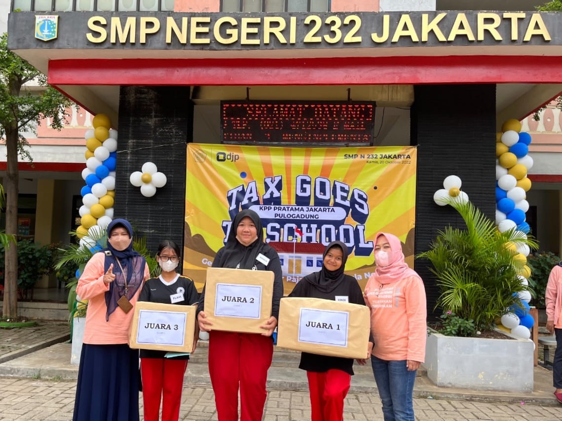 Kantor Pelayanan Pajak (KPP) Pratama Jakarta Pulogadung mengadakan sosialisasi perpajakan dalam rangka Tax Goes to School (TGTS) dengan tema “Generasi Sadar Pajak, Muda Berkreasi Membangun Negeri” kepada siswa-siswi SMP Negeri 232 Jakarta di Pisangan Timur, Jakarta (Kamis, 20/10). Kegiatan ini diikuti oleh 50 siswa-siswi dan beberapa perwakilan guru.