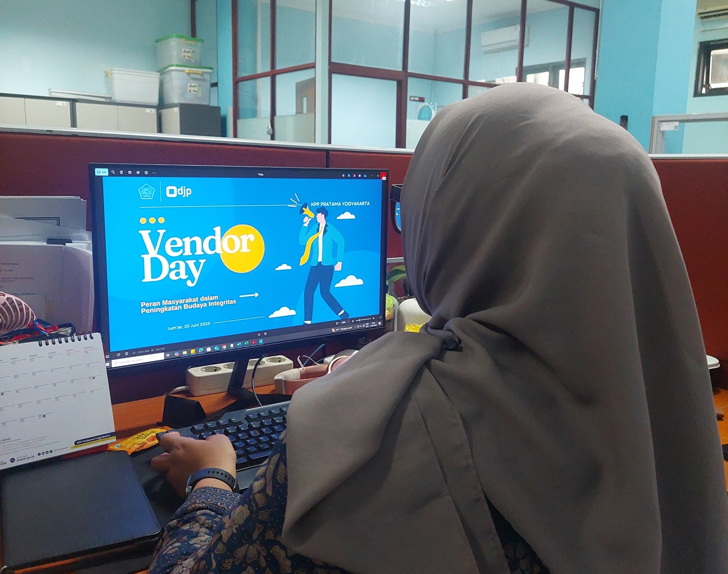 Kantor Pelayanan Pajak (KPP) Pratama Yogyakarta kembali menyelenggarakan acara Vendor Day bertajuk Sosialisasi Antikorupsi dan Pengendalian Gratifikasi secara daring (Jumat, 20/6).