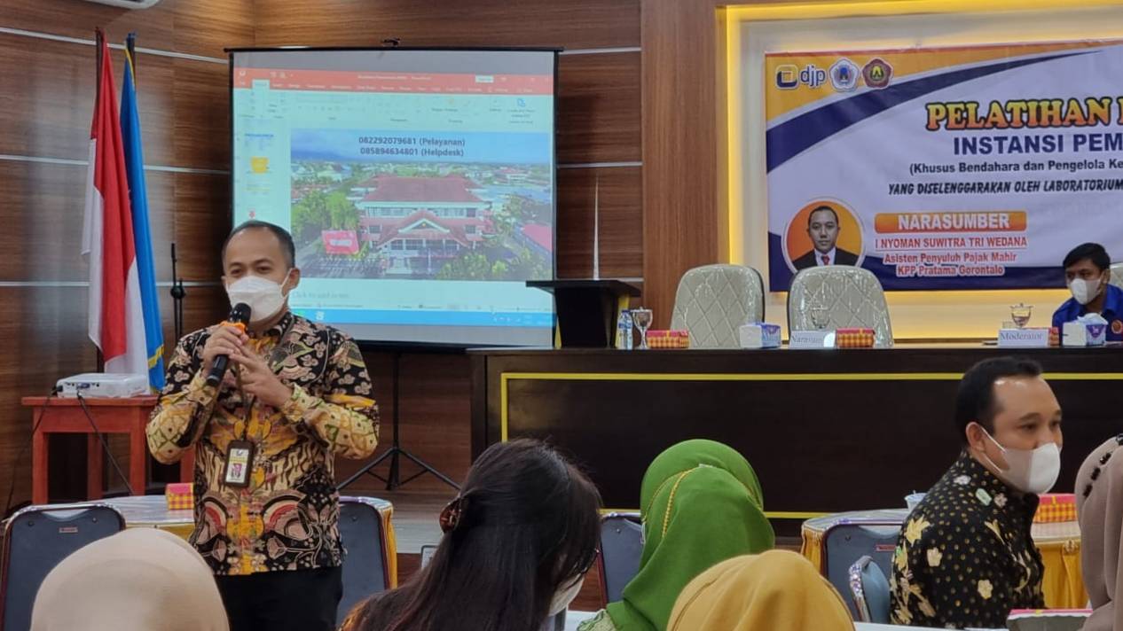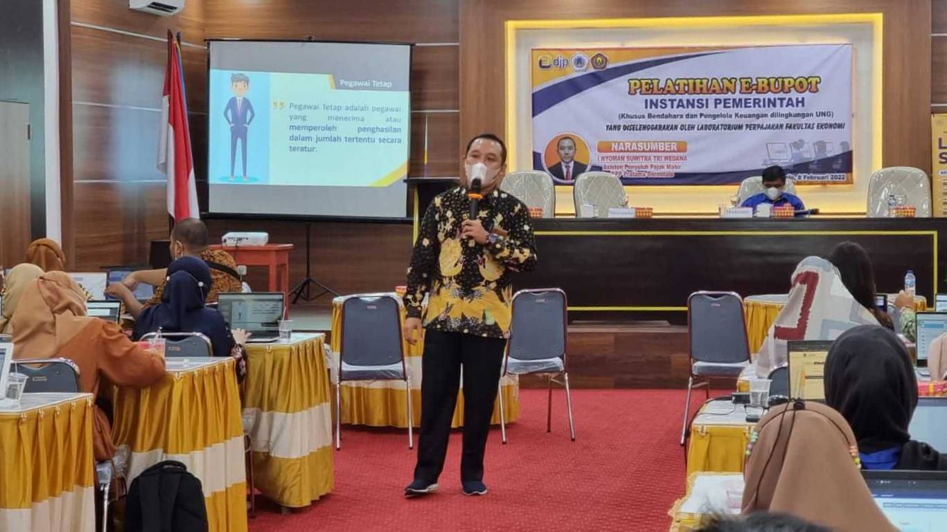 Kantor Pelayanan Pajak (KPP) Pratama Gorontalo menghadiri undangan dari Universitas Negeri Gorontalo (UNG) sebagai narasumber dalam kegiatan Pelatihan Aplikasi Elektronik Bukti Potong (e-Bupot) Instansi Pemerintah bagi bendahara dan pengelola keuangan di lingkungan UNG bertempat di Balai Pertemuan UNG, Kota Gorontalo (Selasa, 8/2).