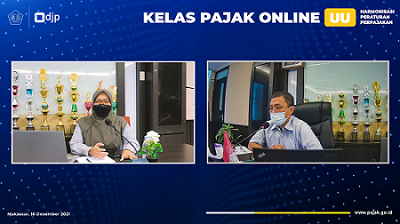 Kantor Pelayanan Pajak (KPP) Madya Makassar menyelenggarakan kegiatan Kelas Pajak Online melalui aplikasi Zoom Meeting dengan tema “Undang-Undang Harmonisasi Peraturan Perpajakan (UU HPP)'' (Kamis, 16/12). Anggota tim penyuluh pajak KPP Madya Makassar Safruddin dan Santi Nilamsari memandu langsung jalannya kelas pajak langsung dari ruang studio KPP Madya Makassar, Kota Makassar.