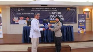 Kantor Pelayanan Pajak (KPP) Pratama Jakarta Koja bekerja sama dengan Kantor Kepolisian Resor (Polres) Metro Jakarta Utara melaksanakan sosialisasi dan pendampingan penyampaian SPT PPh Pasal 21 Wajib Pajak Orang Pribadi Tahun 2022 di Aula Wira Satya lantai VI Polres Metro Jakarta Utara (Kamis, 2/2). Kegiatan dihadiri oleh 50 pegawai Kantor Polres Metro Jakarta Utara.