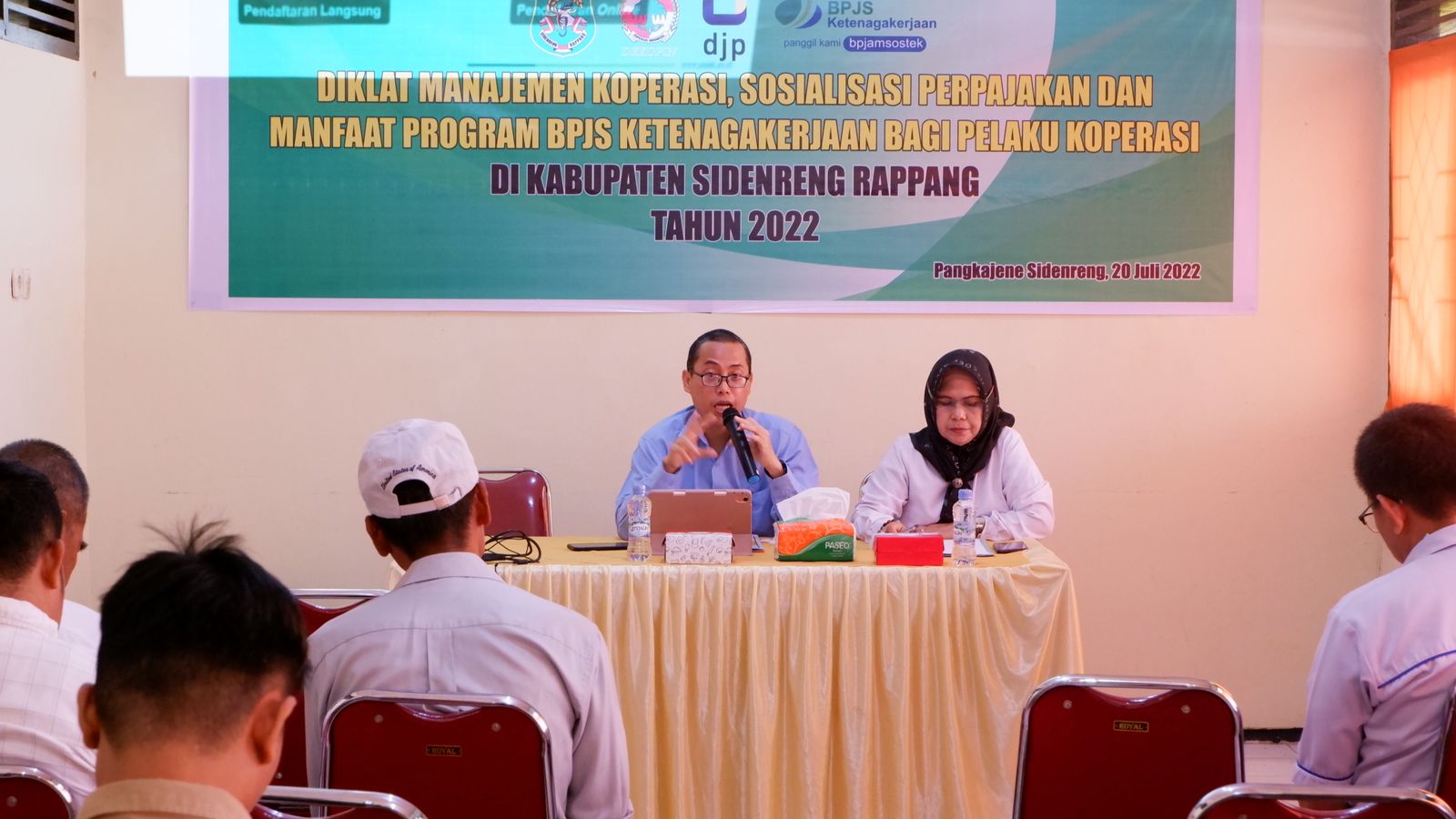 Kantor Pelayanan, Penyuluhan, dan Konsultasi Perpajakan (KP2KP) Sidrap memenuhi udangan Kepala Dinas Koperasi, UKM, Tenaga Kerja, dan Transmigrasi Kabupaten Sidenreng Rappang untuk memberikan edukasi perpajakan pada acara Diklat Manajemen Koperasi (Rabu, 27/7). Acara tersebut dilangsungkan secara tatap muka di ruang aula gedung Unit Pelaksana Teknis Dinas Balai Latihan Kerja (UPTD BLK) Sidrap, Kabupaten Sidenreng Rappang.