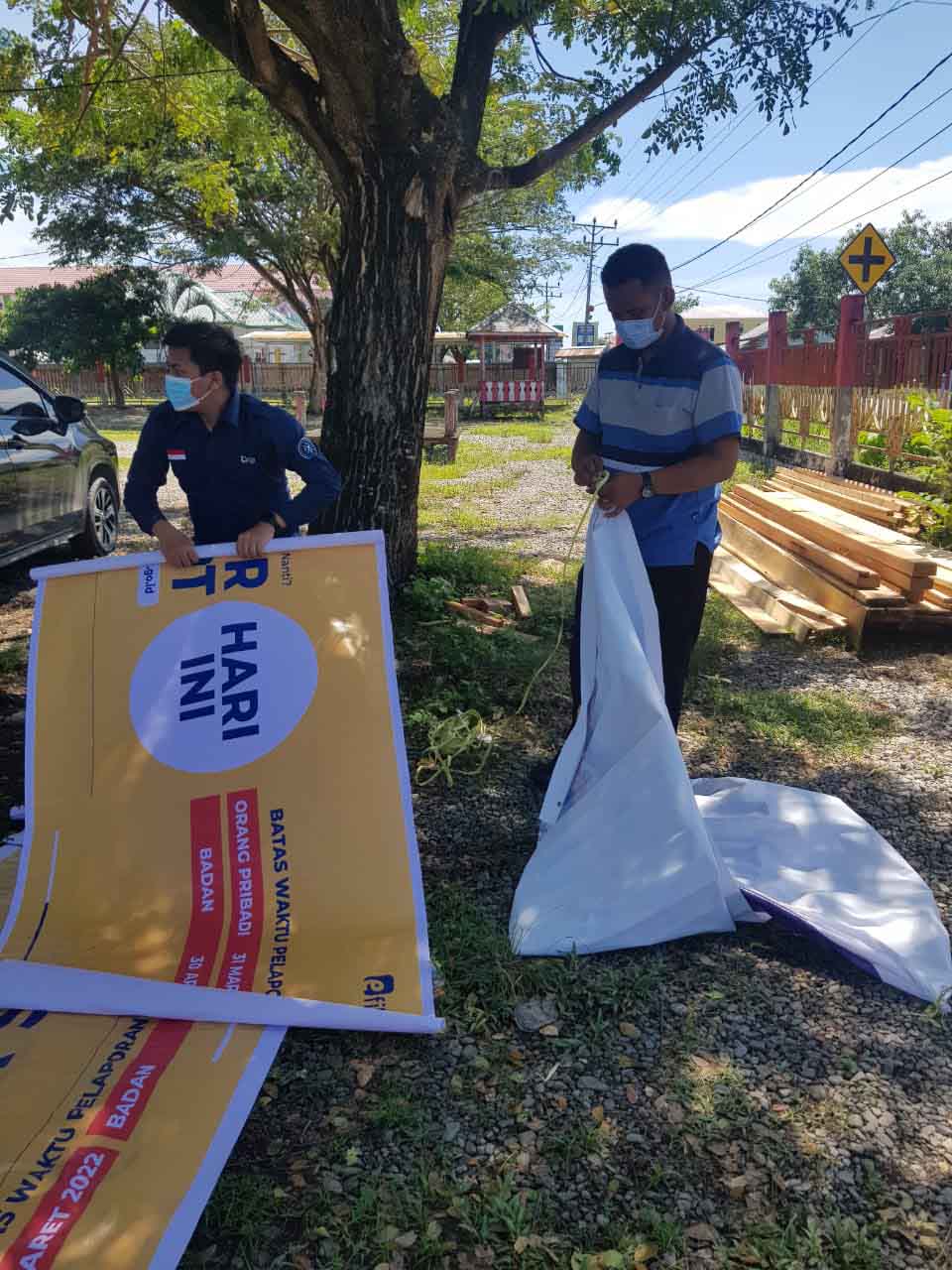 Kantor Pelayanan Penyuluhan dan Konsultasi Perpajakan (KP2KP) Banawa melakukan kegiatan publikasi luar ruang terkait Program Pengungkapan Sukarela (PPS) dan Pelaporan Surat Pemberitahuan (SPT) Tahunan dalam bentuk pemasangan spanduk di beberapa kantor kecamatan yang berada di wilayah Kabupaten Donggala, Sulawesi Tengah (Rabu, 19/1).