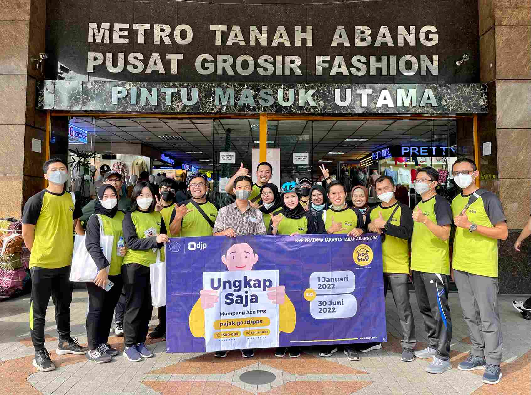 Kantor Pelayanan Pajak (KPP) Pratama Jakarta Tanah Abang Dua melaksanakan kampanye simpatik Program Pengungkapan Sukarela (PPS) di lingkungan sekitar KPP Pratama Jakarta Tanah Abang Dua, Tanah Abang, Jakarta Pusat (Jumat, 17/6). Kegiatan ini melibatkan para pegawai KPP Pratama Jakarta Tanah Abang Dua. Kegiatan ini bertujuan untuk menyebarluaskan informasi terkait PPS kepada masyarakat sehingga masyarakat dapat mengetahui dan turut serta dalam mengikuti program tersebut.