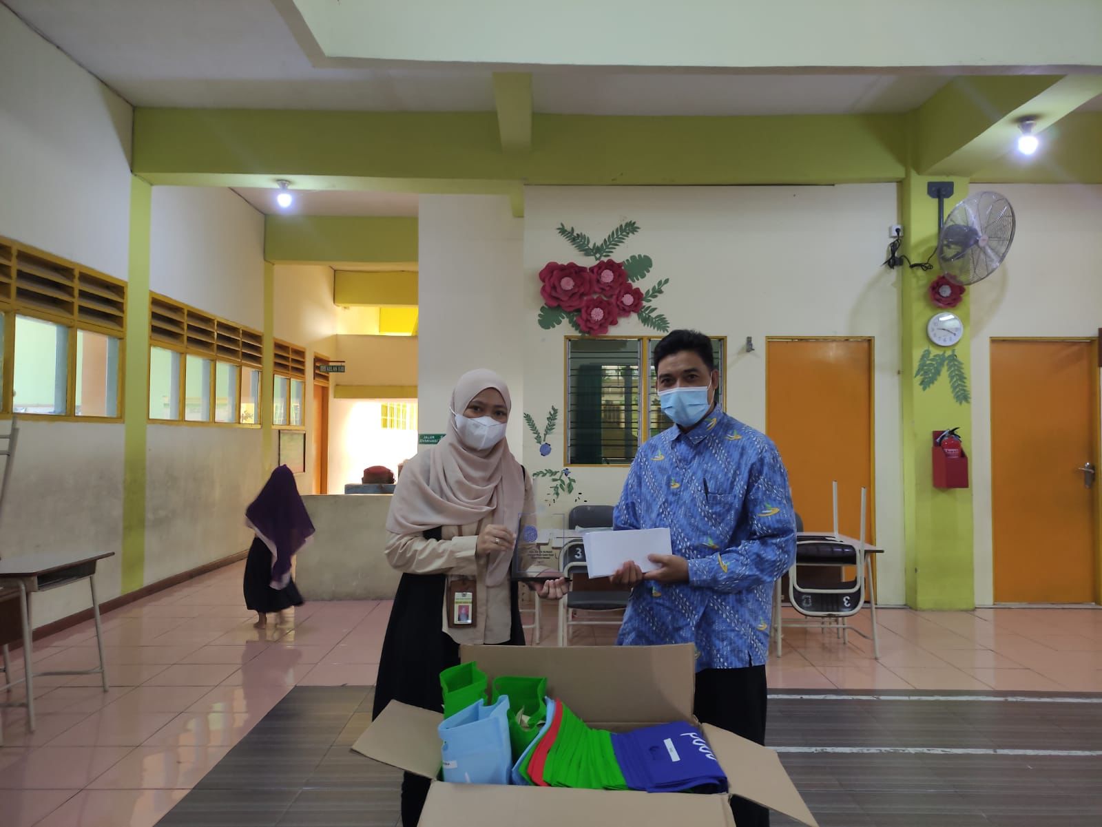 Tidak hanya cenderamata untuk siswa siswi, KPP Pratama Bontang juga memberikan plakat ke SDIT Asy Syaamil.