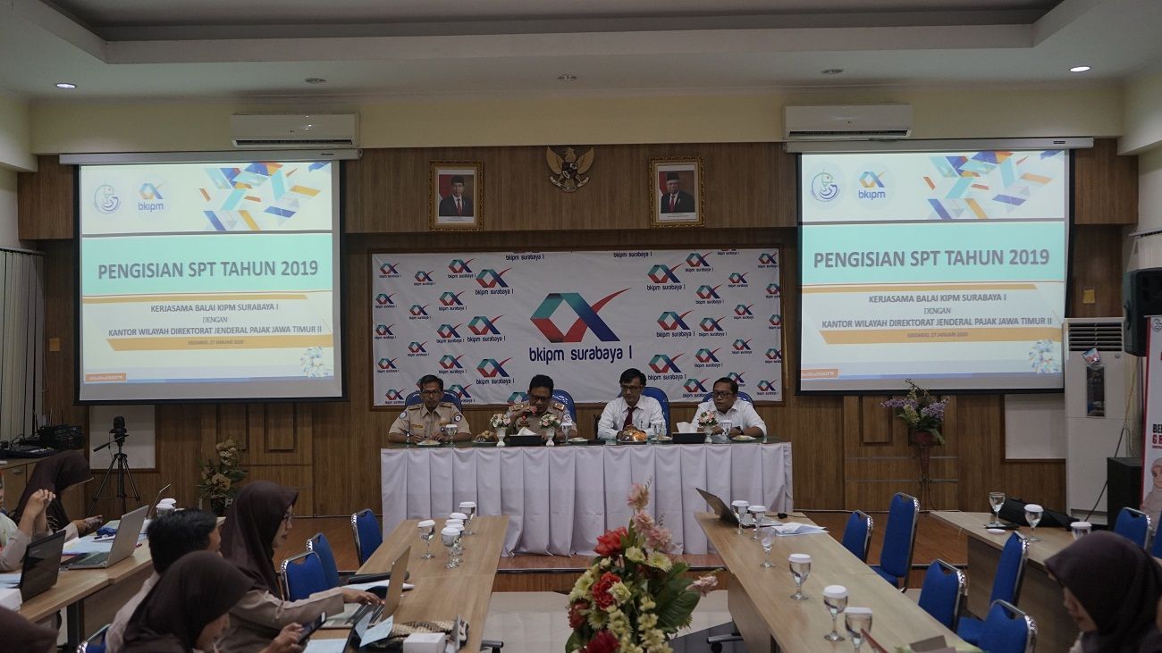 Empat puluhan pegawai Badan Karantina Ikan, Pengendalian Mutu dan Keamanan Hasil Perikanan (BKIPM) Surabaya I mengikuti kegiatan asistensi pengisian SPT Tahunan oleh Kanwil DJP Jawa Timur II (Senin, 27/1). Kegiatan yang dilaksanakan di kantor BKIPM Jl. Raya Bandar Udara Ir. H. Juanda No. 23, Sidoarjo tersebut dibuka langsung oleh Kepala BKIPM Surabaya I Muhlin, S.Pi., M.Si.