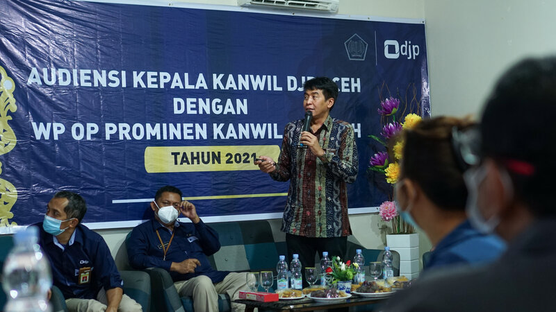 Kepala Kantor Wilayah Direktorat Jenderal Pajak (Kanwil DJP) Aceh Imanul Hakim melakukan audiensi bersama Wajib Pajak Orang Pribadi (WP OP) Prominen Wilayah Barat Selatan Aceh di Aula Hotel Meuligoe, Meulaboh, Kab. Aceh Barat (Kamis, 8/4).