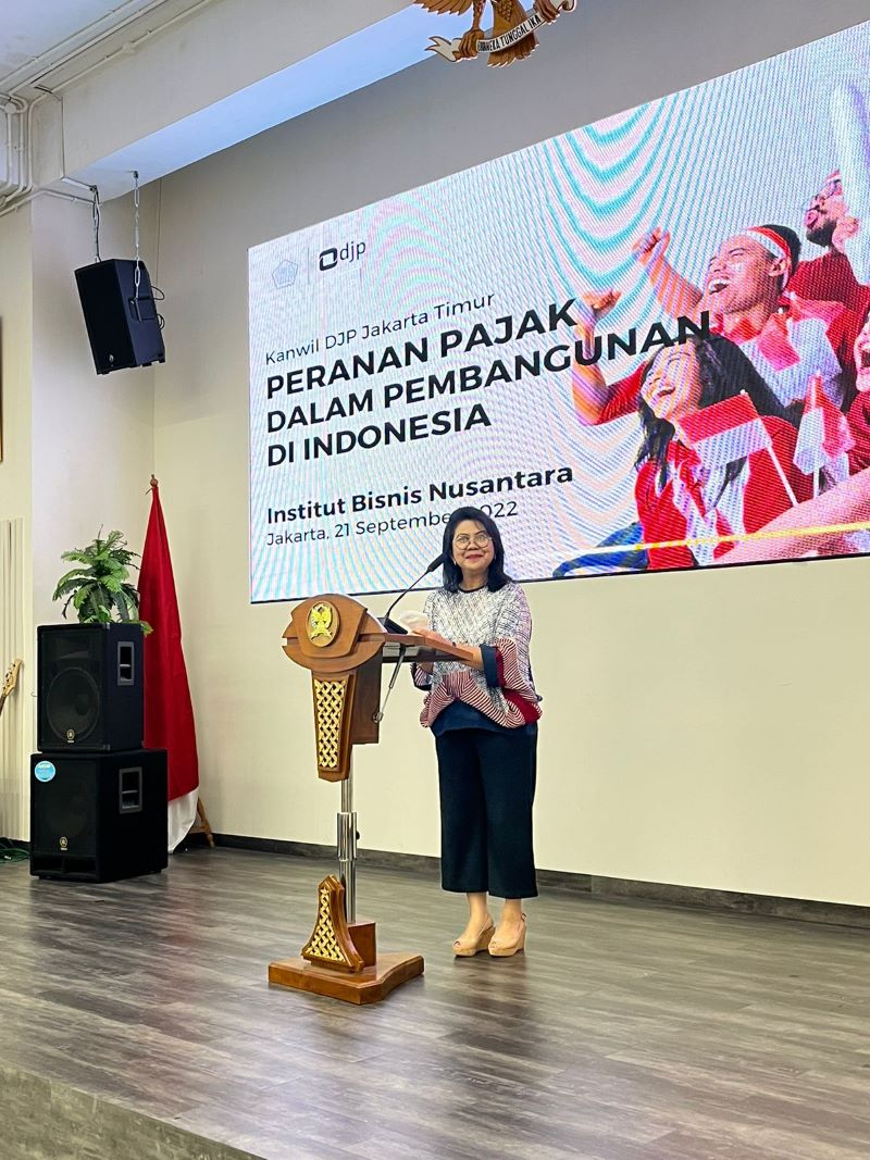 Kepala Kantor Wilayah DJP Jakarta Timur Muhammad Ismiransyah M. Zain menjadi salah satu narasumber dalam kegiatan Pengenalan Kehidupan Kampus bagi Mahasiswa Baru (PKKMB) Tahun 2022 yang diselenggarakan oleh Institut Bisnis Nusantara (IBN) di Aula Lantai 9 Gedung Pulomas Office, Jakarta Timur (Rabu, 21/9).