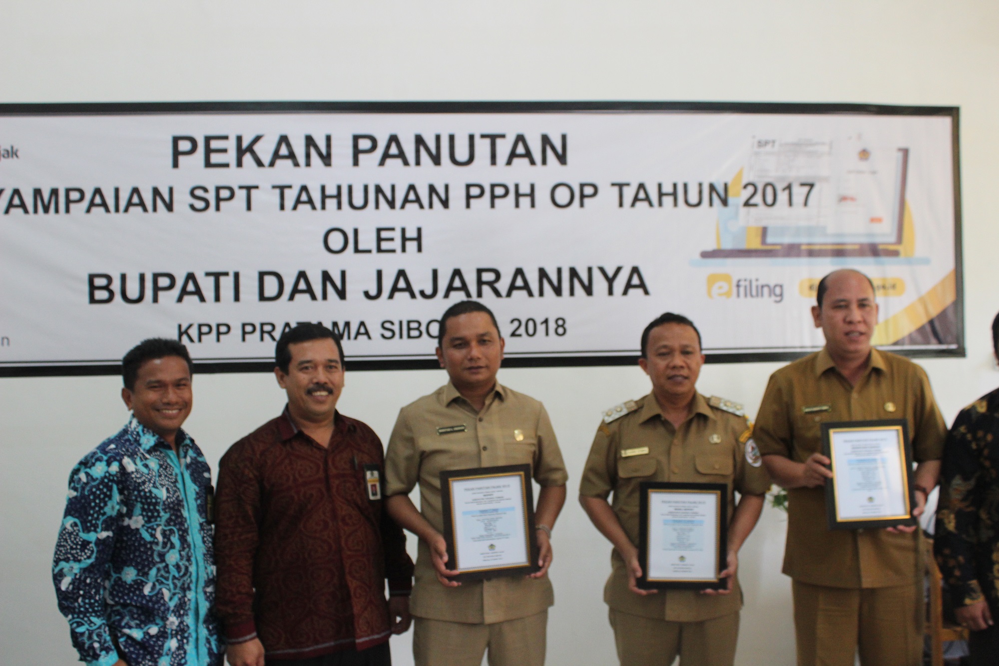 Plh. Kepala KPP Pratama Sibolga Daniel Zebua menyampaikan tujuan dari Pemerintah Pusat secara Nasional dan serentak untuk melaksanakan Pekan Panutan Penyampaian SPT Tahunan PPh Orang Pribadi di Bulan Maret 2018. Tujuannya untuk menjadi contoh panutan dan teladan bagi masyarakat di Tapanuli Tengah diawali dengan Bupati Tapanuli Tengah beserta seluruh Pimpinan dan Pejabat di Lingkungan Pemerintahan Kabupaten Tapanuli Tengah dalam menyampaikan pelaporan SPT Tahunan 2017. Atas penyampaian SPT Tahunan oleh Bupati Tapanuli Tengah dan jajaran, KPP Pratama Sibolga dan KP2KP Pandan berharap mampu mendorong seluruh lapisan masyarakat di Tapanuli Tengah untuk turut serta dalam melaporkan SPT Tahunan 2017 khususnya secara online melalui e-filing dengan batas waktu penyampaian 31 Maret 2018. "Kami mengharapkan kerja sama dan sinergi khususnya dengan Pemda Tapanuli Tengah untuk mencapai target penerimaan pajak 2018 yang akan berdampak pada peningkatan APBD Tapanuli Tengah nantinya," tutup Daniel Zebua.