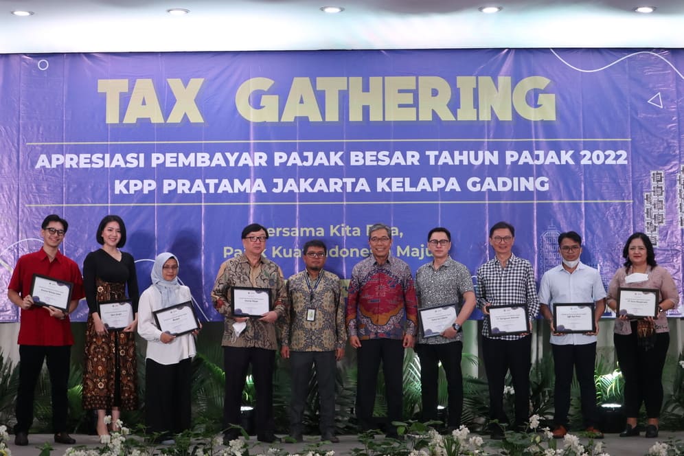 Kantor Pelayanan Pajak (KPP) Pratama Jakarta Kelapa Gading menggelar acara Tax Gathering 2023 di Ballroom Klub Kelapa Gading, Jakarta (Selasa, 21/2). Acara diadakan untuk memberikan apresiasi dan penghargaan kepada wajib pajak pembayar pajak terbesar di lingkungan KPP Pratama Jakarta Kelapa Gading serta Kawan Pajak Panutan yaitu Brandon Salim dan Agnes Jennifer. Acara dihadiri 52 wajib pajak di dampingi Account Representative masing masing.