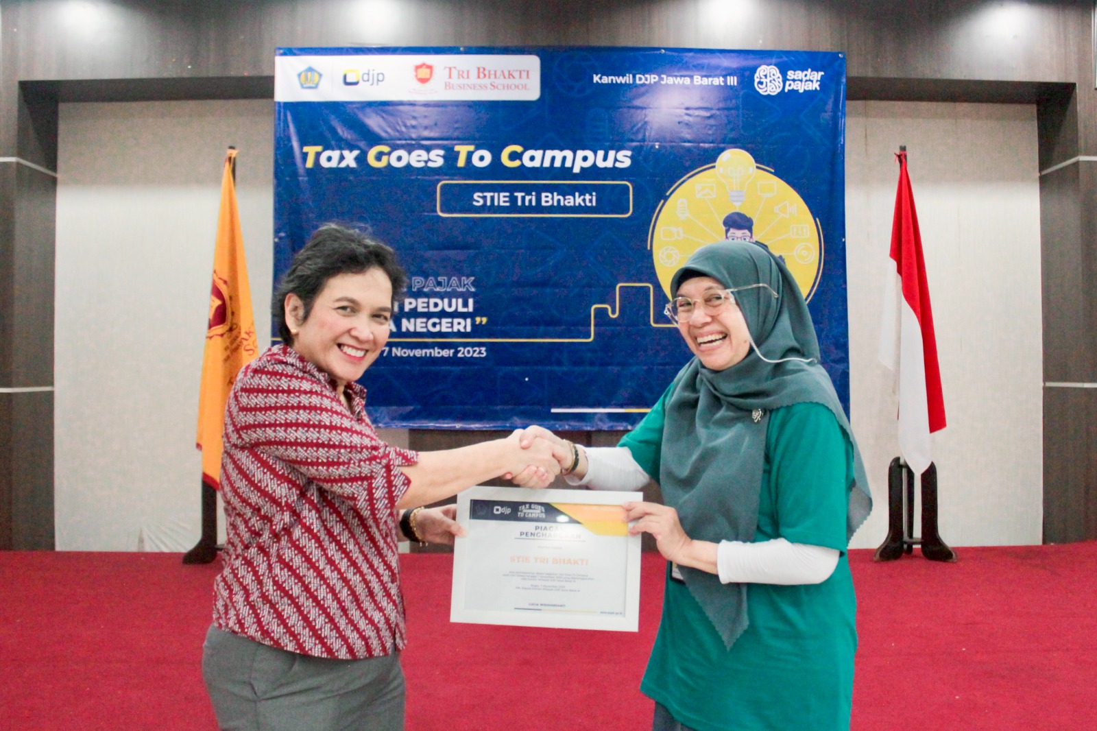 Kantor Wilayah Direktorat Jenderal Pajak (Kanwil DJP) Jawa Barat III bersama Sekolah Tinggi Ilmu Ekonomi (STIE) Tri Bhakti gelar kegiatan Tax Goes To Campus (TGTC) dengan tema “Sadar Pajak, Bukti Peduli Pada Negeri” di Aula STIE Tri Bhakti, Kota Bekasi (Selasa, 7/11).
