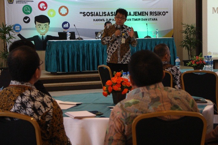 Kantor Wilayah (Kanwil) Direktorat Jenderal Pajak (DJP) Kalimantan Timur dan Utara (Kaltimra) mengadakan Sosialisasi Manajemen Risiko se-Kanwil DJP Kaltimra di Aula Lantai IV Gedung Kanwil DJP Kaltimra, Jalan Ruhui Rahayu No.1, Balikpapan (Selasa, 10/04). Sosialisasi ini merupakan acara lanjutan dari bimbingan teknis yang telah dilaksanakan di Kantor Pusat DJP mengenai Manajemen Risiko. Selain itu, sosialisasi ini juga sebagai tindak lanjut Peraturan Menteri Keuangan Nomor PMK 210/PMK.01/2017 tentang Organisasi Dan Tata Kerja Instansi Vertikal Direktorat Jenderal Pajak.