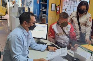 Penyuluh Kantor Pelayanan Pajak (KPP) Pratama Sukabumi Rudiatna memberikan asistensi pelaporan SPT Tahunan PPh Orang Pribadi melalui e-Filing kepada anggota Kepolisian Resor Kota (Polresta) Sukabumi Johan Effendi di Helpdesk KPP Pratama Sukabumi, Jalan R.E Martadinata no.1, Cikole, Kota Sukabumi (Rabu, 14/1).