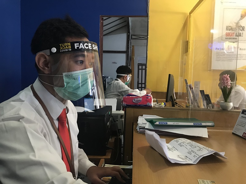 Termasuk kegiatan pencegahan, wajib pajak yang datang diharuskan untuk menggunakan masker, mencuci tangan dan dilakukan cek suhu oleh petugas serta pegawai yang bertugas wajib untuk memakai face shield selama pelayanan tatap muka kenormalan baru berlangsung.
