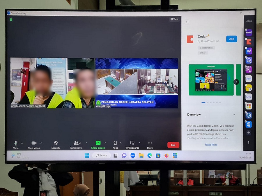 Majelis Hakim Pengadilan Negeri Jakarta Selatan yang diketuai oleh Bawono Effendi membacakan putusan pidana penjara terhadap dua orang terdakwa yakni Ahmad Khadafi alias Vicky Andrean dan Junaidi Priandi dalam kasus faktur pajak yang tidak berdasarkan transaksi yang sebenarnya (TBTS) melalui wajib pajak PT. EIB dan PT. PKB di Pengadilan Negeri Jakarta Selatan (Kamis, 16/2).