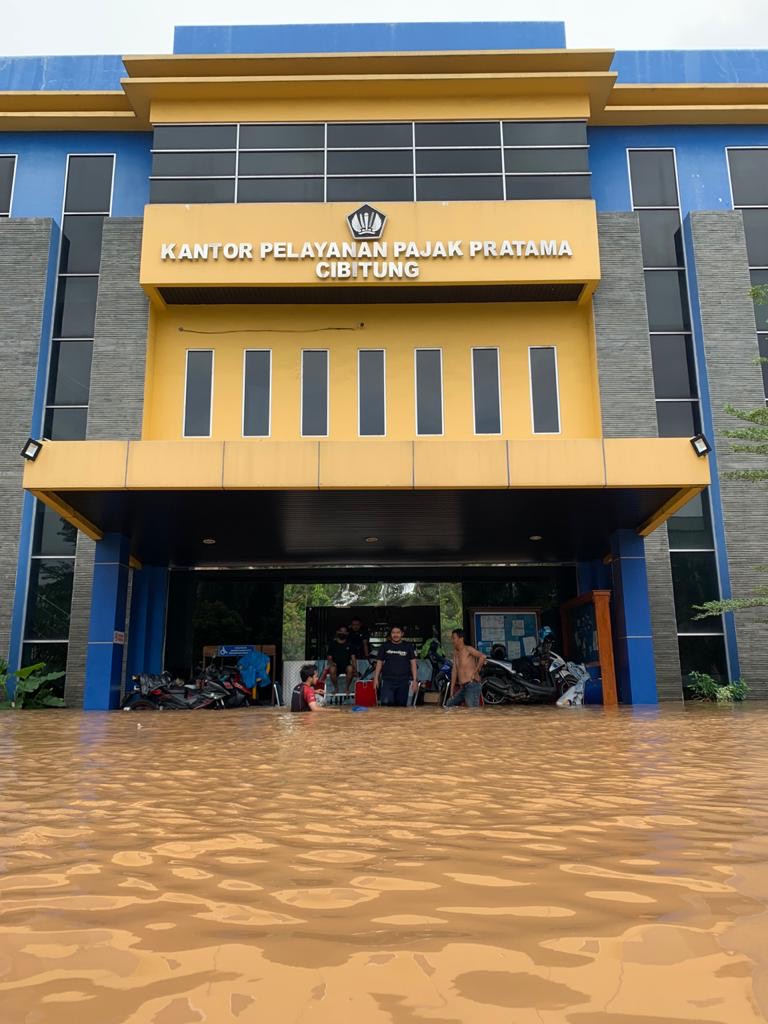 Kantor Pelayanan Pajak (KPP) Pratama Cibitung memindahkan seluruh kegiatan pelayanan tatap muka perpajakan ke Pos Pelayanan yang berlokasi di Area Pertokoan Pasar Modern, Kompleks Harapan Indah, Kabupaten Bekasi (Sabtu, 20/2). Tindakan ini dilakukan akibat dari banjir yang melanda di wilayah kerja KPP Pratama Cibitung hingga membuat beberapa Kantor Pelayanan Publik lumpuh.