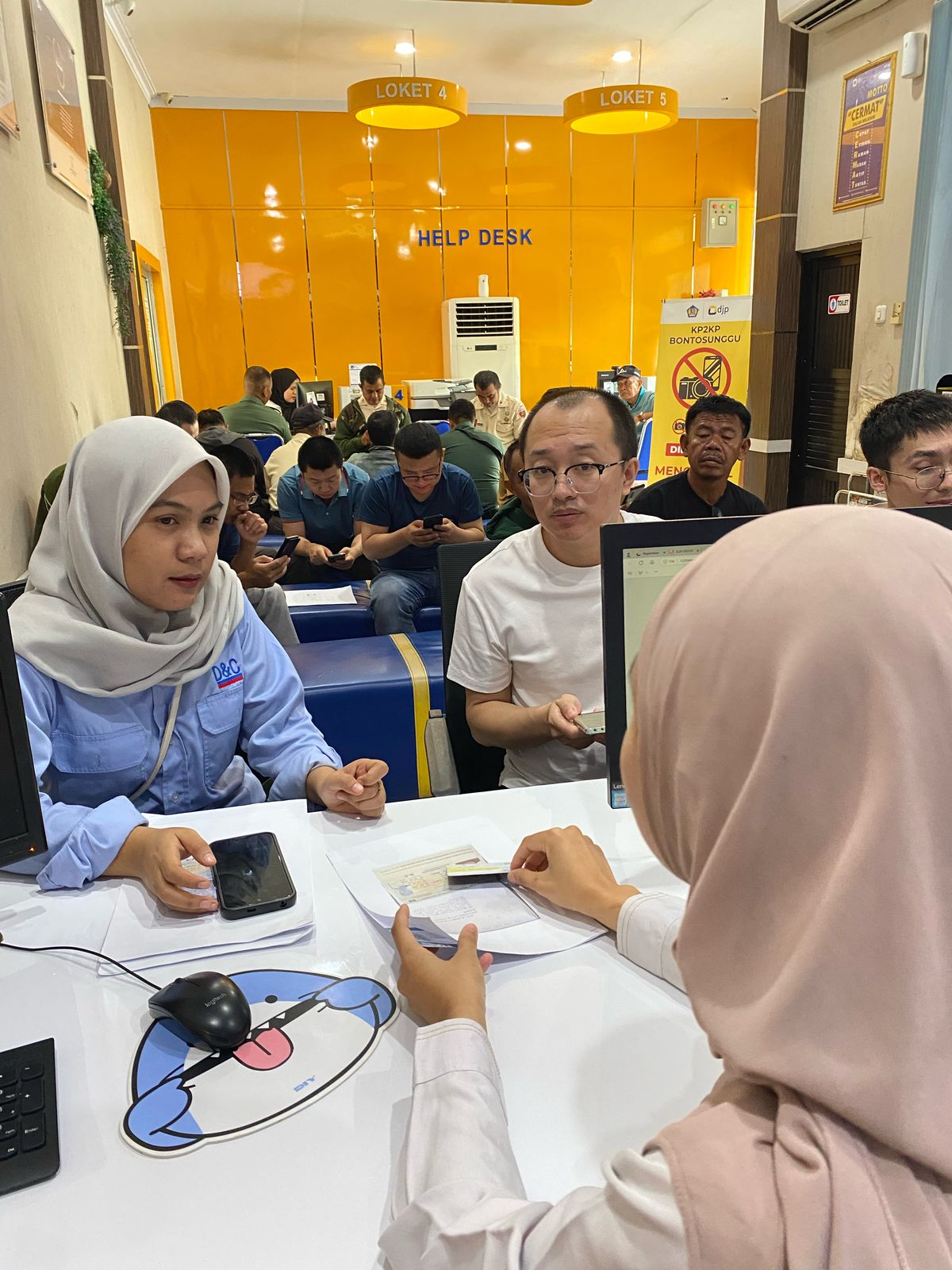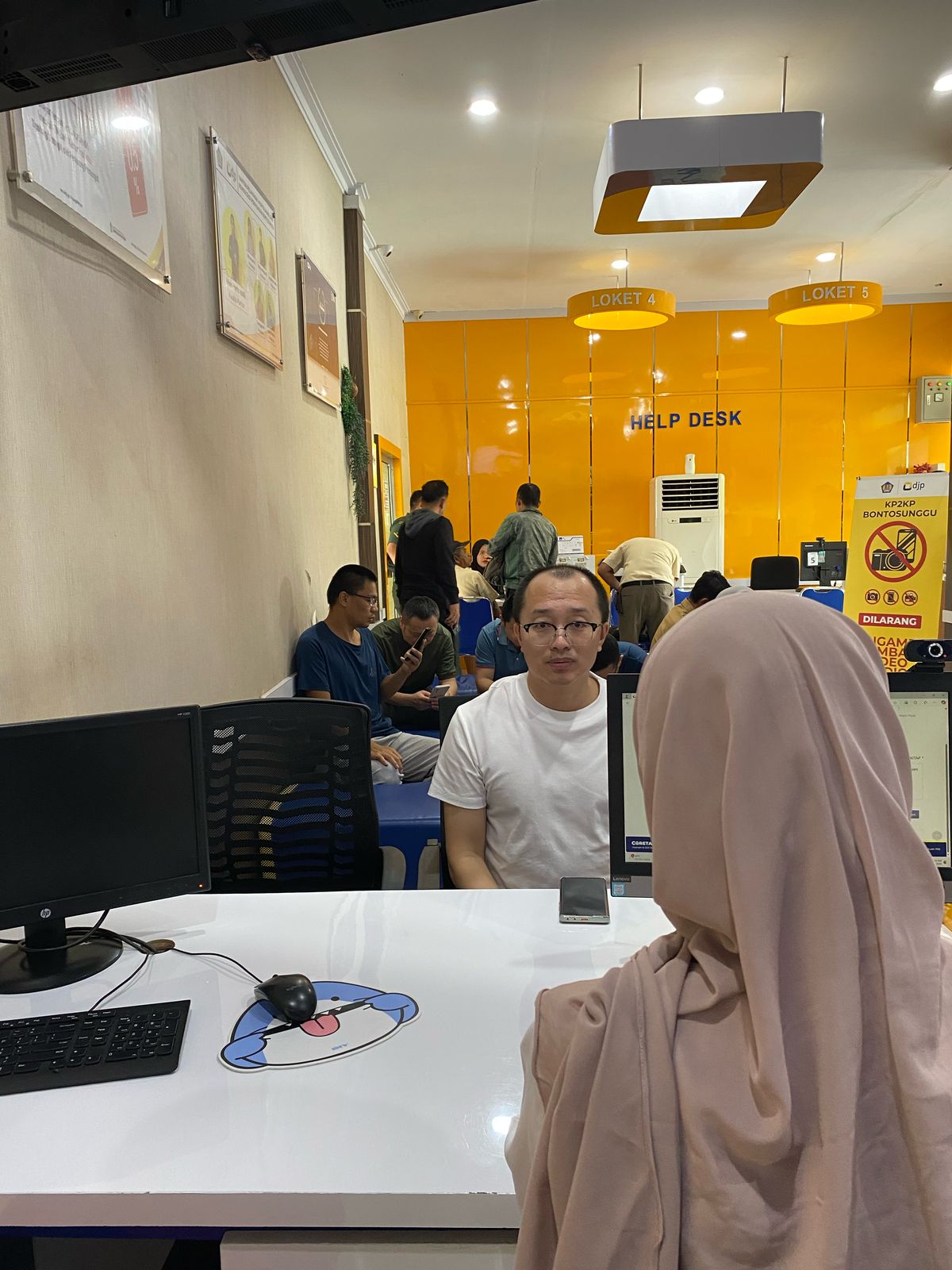 Didampingi oleh penerjemah dari perusahaannya, Wei Zhang, Warga Negara Asing (WNA) asal Cina, mengaku telah tinggal dan bekerja di Indonesia lebih dari 183 hari. Wei Zhang pun telah berusaha mendaftarkan NPWP secara mandiri, namun mengalami kendala, sehingga lebih memilih untuk datang ke kantor secara langsung.