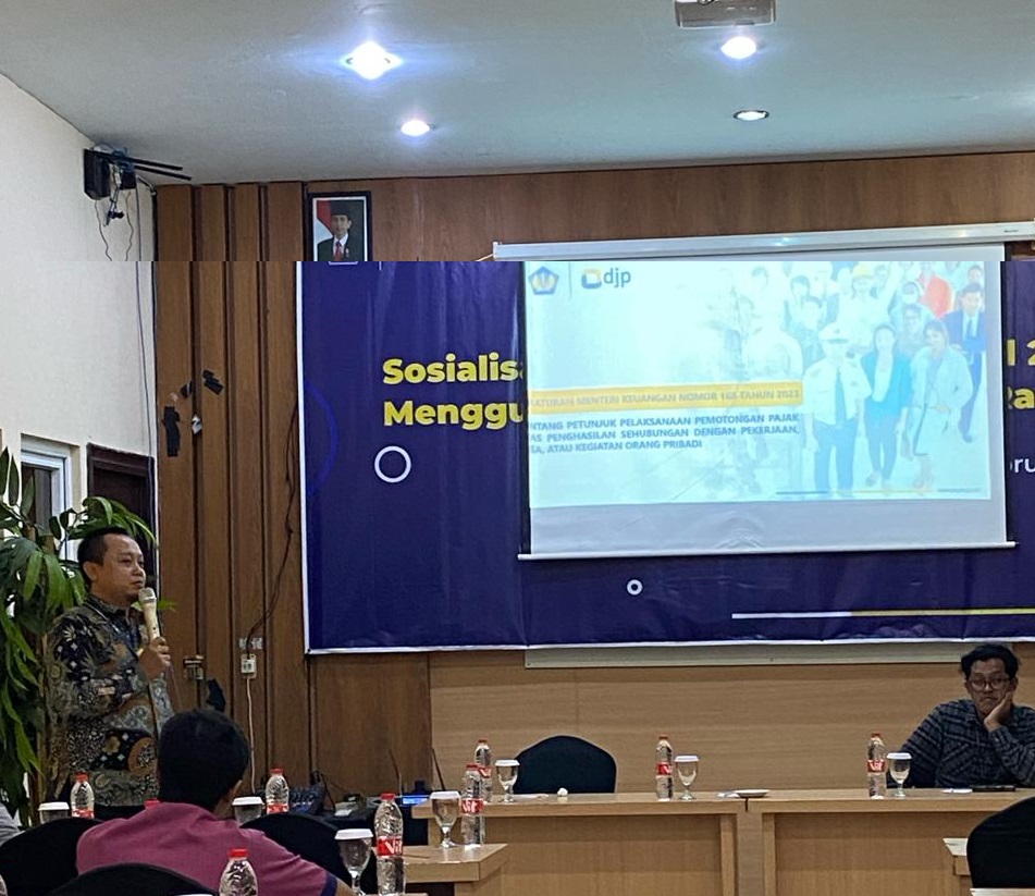 Pemaparan materi dibagi menjadi dua sesi. Sesi pertama disampaikan oleh Sakti Bue Marisa selaku Account Representative Seksi Pengawasan I yang membahas mengenai Peraturan Pemerintah (PP) Nomor 58 Tahun 2023 tentang Tarif Pemotongan Pajak Penghasilan Pasal 21 terkait Penghasilan Sehubungan dengan Pekerjaan, Jasa, atau Kegiatan Wajib Pajak Orang Pribadi dan Peraturan Menteri Keuangan (PMK) Nomor 168 Tahun 2023 tentang Petunjuk Pelaksanaan Pemotongan Pajak atas Penghasilan Sehubungan dengan Pekerjaan, Jasa, atau Kegiatan Orang Pribadi.