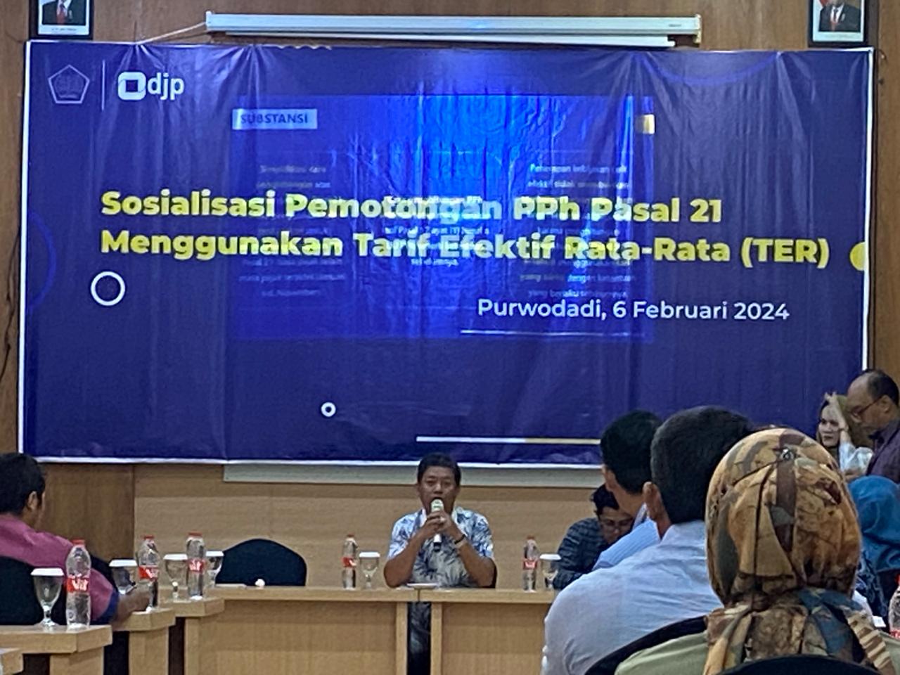 Kantor Pelayanan Pajak (KPP) Pratama Blora berkolaborasi dengan Kantor Pelayanan Penyuluhan dan Konsultasi Perpajakan (KP2KP) Purwodadi menggelar sosialisasi perpajakan di Ruang Pertemuan Hotel 21 Purwodadi dengan tema Pemotongan PPh Pasal 21 Menggunakan Tarif Efektif Rata-Rata (TER) kepada 30 Wajib Pajak Strategis di wilayah Kabupaten Grobogan (Selasa, 6/2).