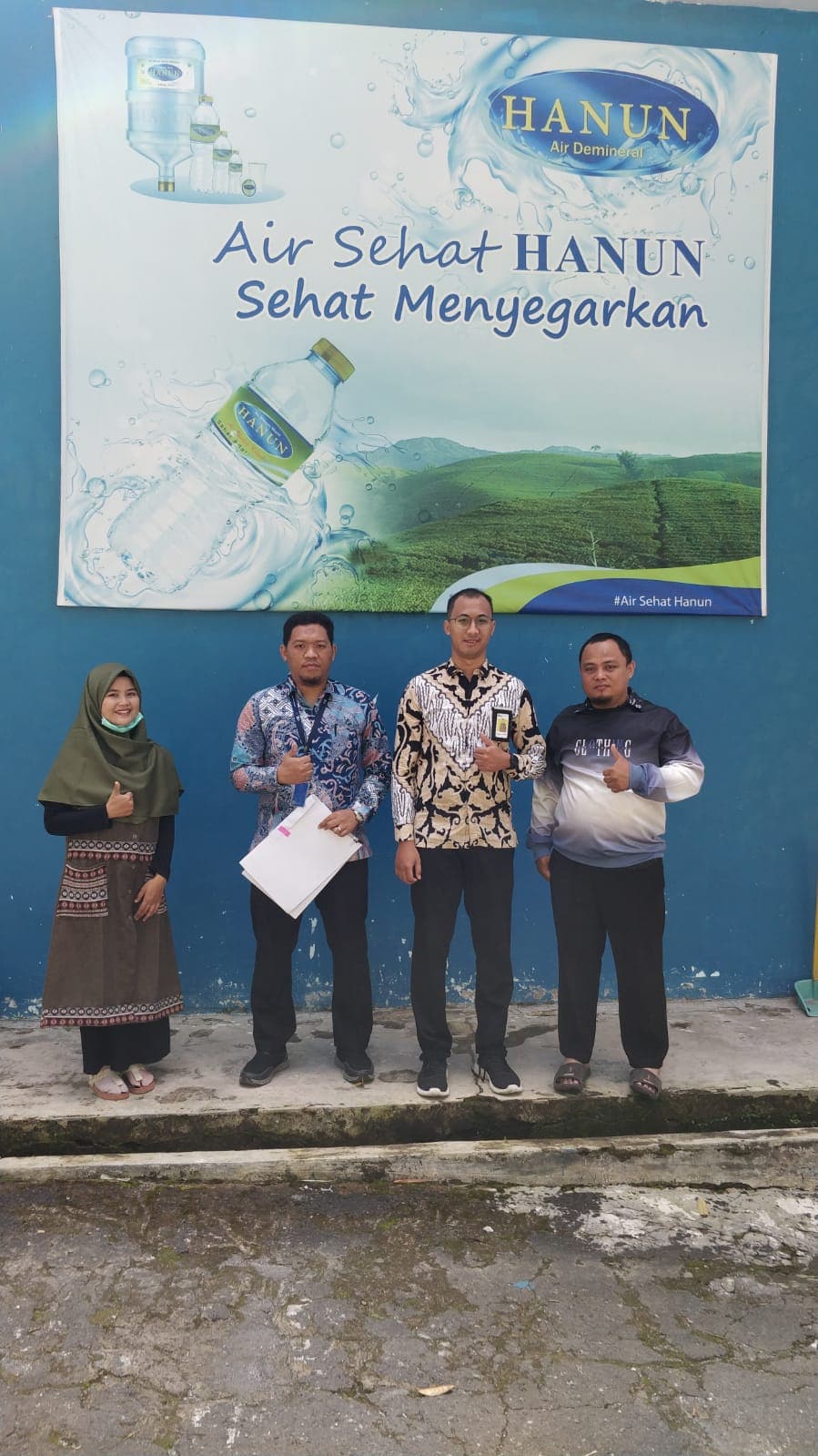 M. Ichwan Setiawan dan M. Yogie Paskilindra sebagai petugas verifikasi lapangan mengunjungi lokasi usaha PT Surya Tirta Mandiri yang merupakan lokasi produksi air mineral siap konsumsi dengan merek Hanun. Kemudian, kedua petugas tersebut mewawancarai Reki, Manajer Operasional PT Surya Tirta Mandiri terkait alasan pengajuan permohonan, peredaran bruto, kegiatan operasi usaha, dan informasi-informasi lainnya.