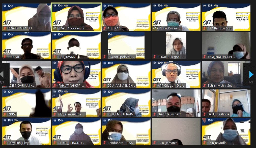 Kantor Pelayanan Pajak (KPP) Pratama Cilegon menggelar kegiatan secara virtual bertajuk Dialog dan Sosialisasi Perpajakan dengan Instansi Daerah yang dihadiri oleh bendahara dari 38 instansi pemerintah daerah se-Kota Cilegon di Kota Cilegon (Senin, 12/7).