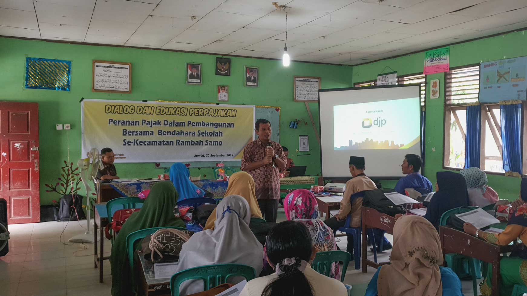 Kantor Pelayanan Penyuluhan dan Konsultasi Perpajakan (KP2KP) Pasir Pangarayan mengadakan dialog dan edukasi perpajakan Peranan Pajak dalam Pembangunan bersama bendahara sekolah se-kecamatan Rambah Samo (Jumat, 20/9). Dialog dan edukasi ini diadakan di SD Negeri 002 Rambah Samo.