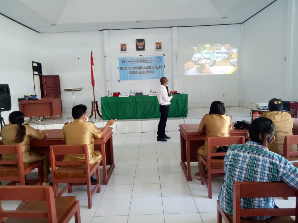 Dalam rangka menambah wawasan dan meningkatkan kepatuhan perpajakan Bendahara Sekolah Pendidikan Anak Usia Dini, KP2KP Talaud bekerja sama dengan Dinas Pendidikan, Pemuda dan Olahraga (Dikpora) Kabupaten Kepulauan Talaud melaksanakan Sosialisasi Kewajiban Perpajakan Bendahara Sekolah (Senin, 16/11).