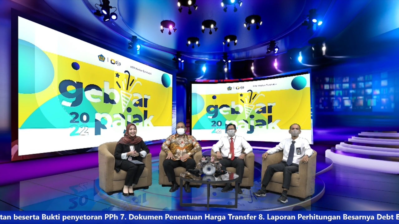 Kantor Pelayanan Pajak (KPP) Madya Surabaya menyelenggarakan acara Gebyar Pajak yang dihadiri oleh lebih dari 400 wajib pajak secara daring di ruang studio KPP Madya Surabaya (Senin, 18/4).