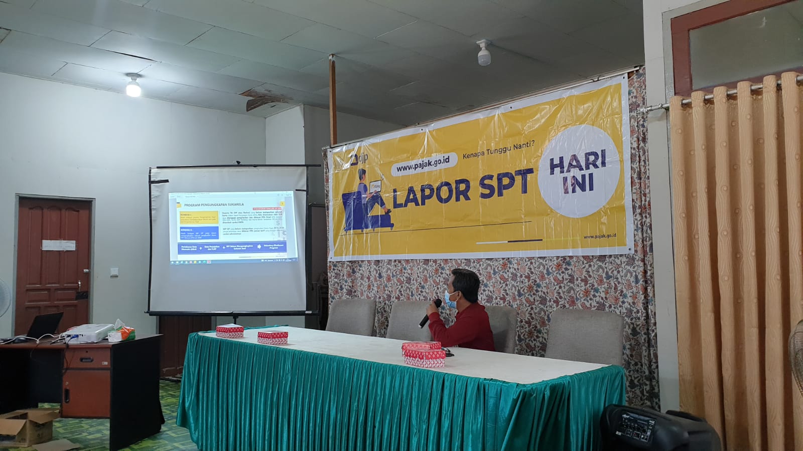Kantor Pelayanan, Penyuluhan, dan Konsultasi Perpajakan (KP2KP) Sangatta dan Kantor Pelayanan Pajak (KPP) Pratama Bontang melaksanakan sosialisasi Surat Pemberitahuan (SPT) Tahunan di aula Rumah Jabatan Kecamatan Kaubun, Kab. Kutai Timur (Kamis, 17/02). Kegiatan yang diikuti oleh 40 peserta terdiri dari Bendahara Pemerintah dan Aparatur Sipil Negara (ASN) Kecamatan Kaubun.