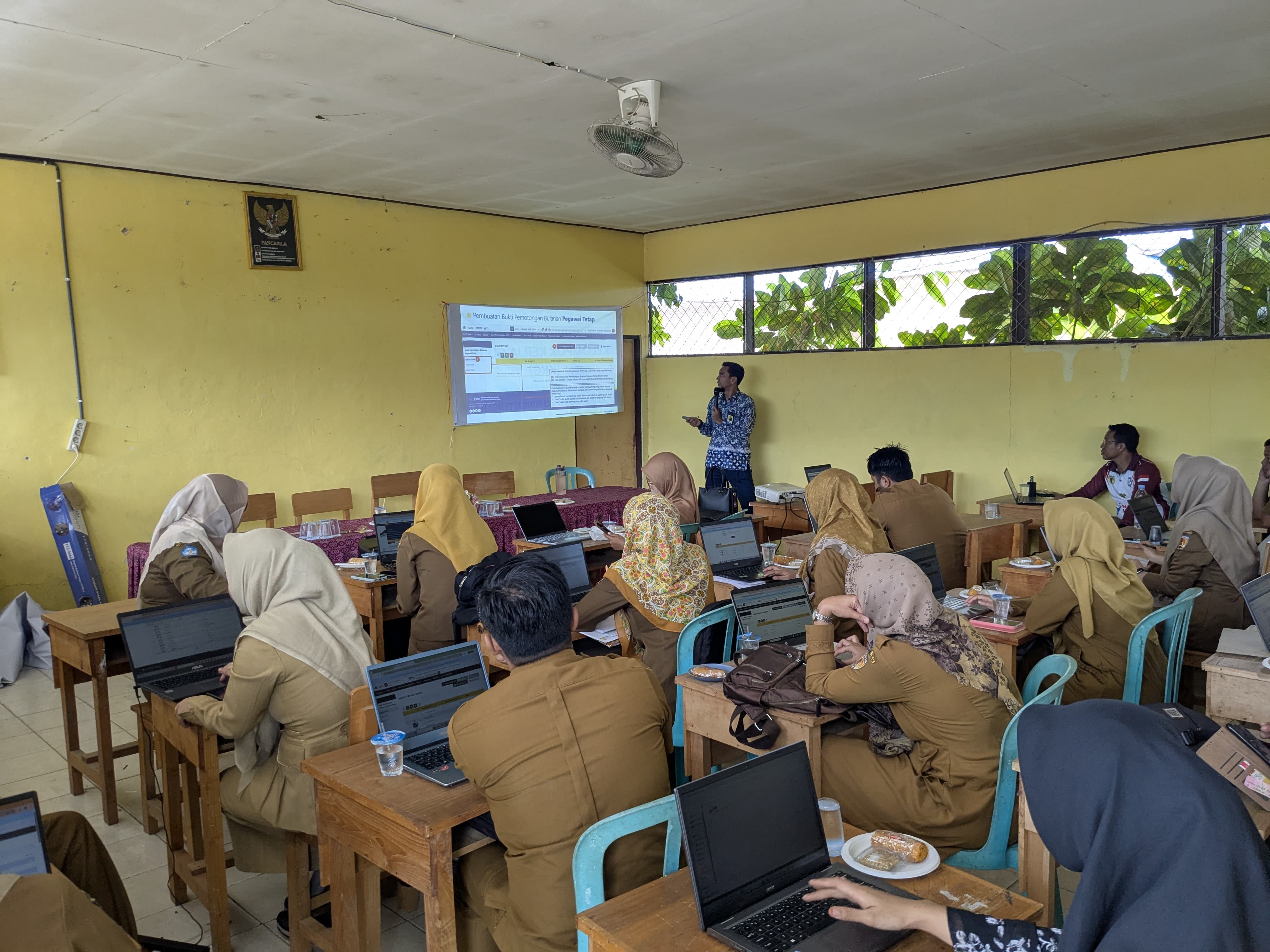 Sosialisasi disampaikan oleh tim penyuluh pajak dari Kantor Pelayanan Pajak (KPP) Pratama Barabai, Enricko Chandra, Rusfi Zulpika, dan Yasmin Ramadhani. Ketiganya menyampaikan materi secara interaktif dan komprehensif, dengan fokus pada aspek teknis yang paling relevan dengan tugas bendahara sekolah.