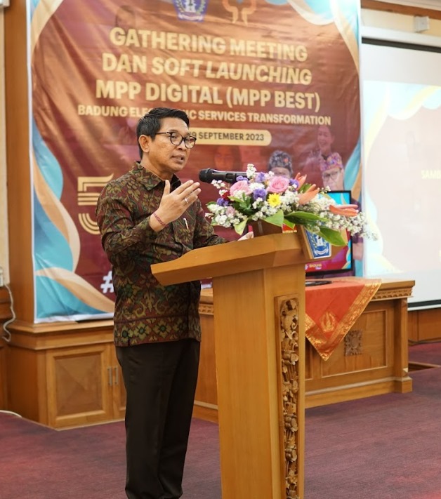 Kepala Dinas Penanaman Modal dan Pelayanan Terpadu Satu Pintu (DPMPTSP) mengadakan acara Gathering Meeting Soft Launching MPP Digital (MPP Best) Badung Electronic Services Transformation yang diselenggarakan di Pusat Pemerintahan Kabupaten Badung, Sempidi, Kecamatan Kuta Utara, Badung (Selasa, 19/9).