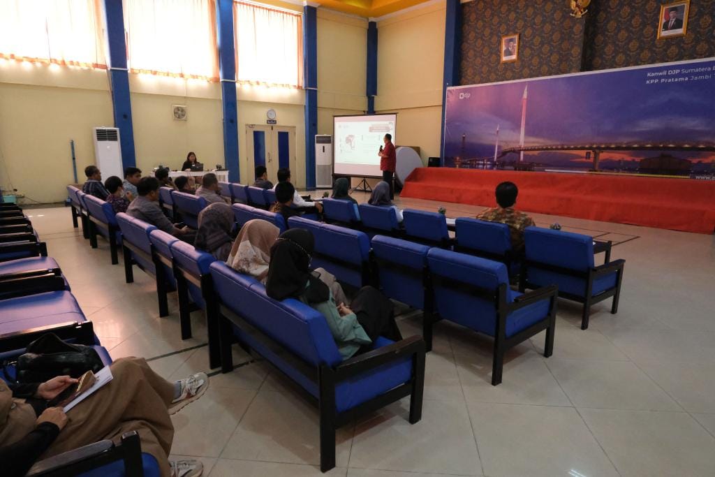 Penyuluh Pajak, Didi Perdana Kesuma, menyampaikan standar pelayanan yang harus dipenuhi oleh KPP Pratama Jambi Telanaipura.