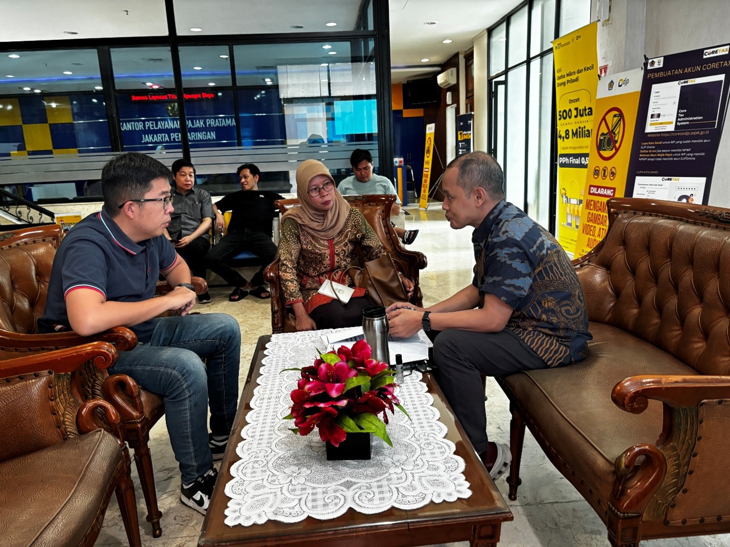 Kantor Pelayanan Pajak (KPP) Pratama Jakarta Penjaringan memberikan edukasi perpajakan kepada pengurus Koperasi Desa/Kelurahan Merah Putih (KMP) Penjaringan dan Penjagalan di Ruang Konsultasi KPP Pratama Jakarta Penjaringan, Pinangsia, Taman Sari, Jakarta Barat (Jumat, 31/10).