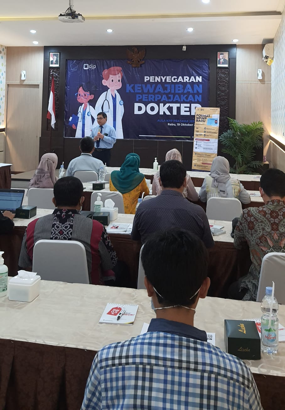 Kantor Pelayanan Pajak (KPP) Pratama Jepara berkolaborasi dengan Kantor Wilayah Direktorat Jenderal Pajak Jawa Tengah I ( Kanwil DJP Jateng I) melaksanakan kegiatan penyegaran hak dan kewajiban perpajakan dokter di aula KPP Pratama Jepara (Rabu,19/10).
