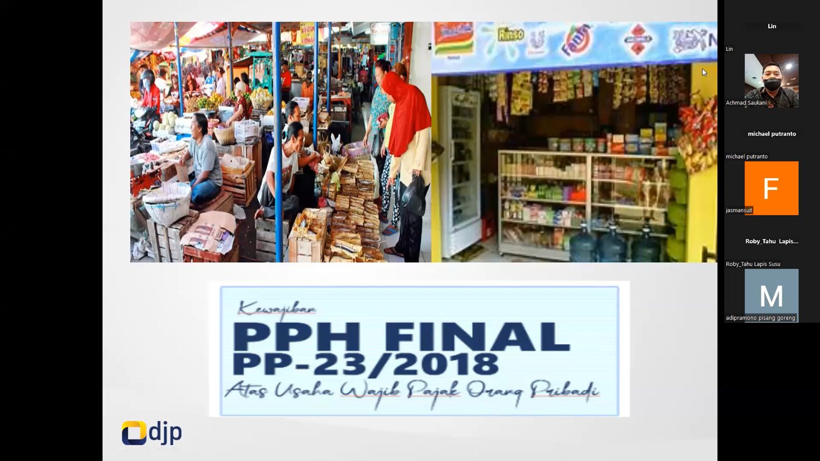 Kantor Pelayanan Pajak Pratama Samarinda Ilir menggelar Kelas Pajak Online dengan tema "Tata Cara Pelaporan Surat Pemberitahuan (SPT) Tahunan Pajak Penghasilan (PPh) Orang Pribadi Pelaku Usahawan" melalui aplikasi Zoom Meeting di Kota Samarinda (Jumat, 27/1). Dimulai pukul 09.00 WITA, kelas pajak dihadiri oleh 28 peserta pelaku usahawan.