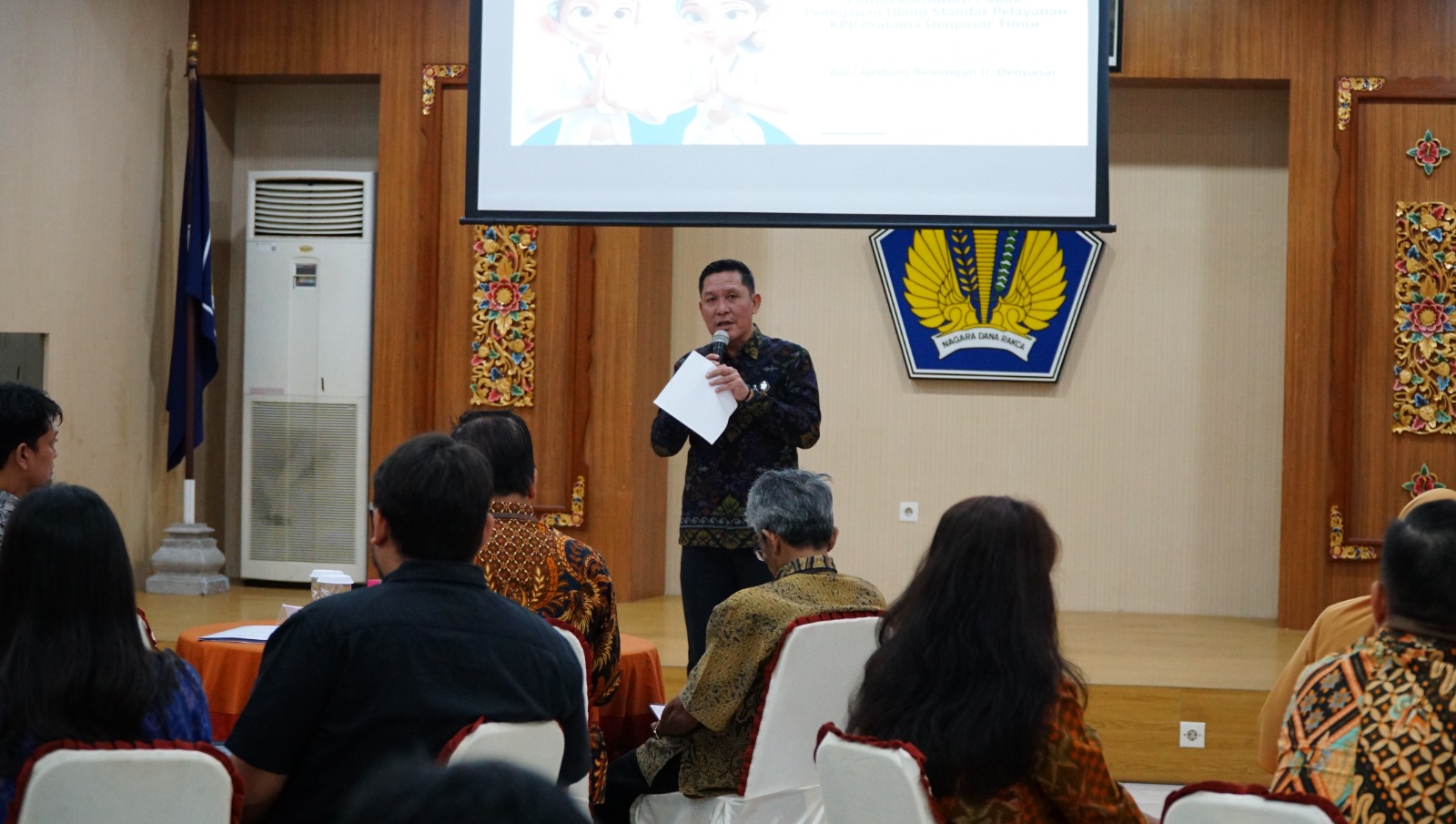 Kantor Pelayanan Pajak (KPP) Pratama Denpasar Timur mengelar Forum Konsultasi Publik (Public Hearing) dengan stakeholders untuk mendapat masukan tentang peninjauan ulang standar pelayanan di Aula Gedung Keuangan Negara II, Kota Denpasar (Jumat, 20/6).