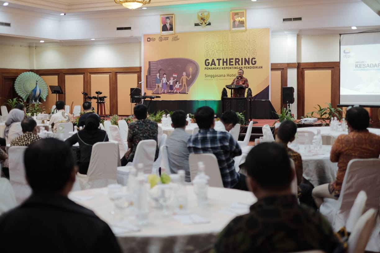 Kanwil DJP Sulawesi Selatan, Barat, dan Tenggara (Sulselbartra) mengadakan acara Gathering Pemangku Kepentingan Pendidikan dalam rangka optimalisasi program Inklusi Pajak tahun 2019 yang diselenggarakan di Singgasana Hotel Makassar (Jumat, 22/11). Acara ini dihadiri oleh perwakilan kepala sekolah, guru, dosen, dan pengurus Tax Center di lingkungan Kota Makassar sebagai peserta undangan.