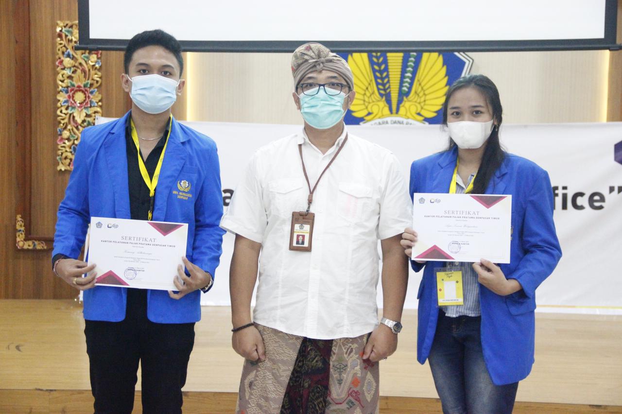 Kantor Pelayanan Pajak (KPP) Pratama Denpasar Timur menyelenggarakan kegiatan pelepasan relawan pajak di Aula GKN II Denpasar (Kamis, 1/4). Selama masa pelaporan SPT Tahunan PPh Wajib Pajak Orang Pribadi, sebanyak 20 relawan pajak dari Mahasiswa Prodi Akuntansi Fakultas Ekonomi Universitas Warmadewa membantu memberikan asistensi pelaporan SPT Tahunan kepada Wajib Pajak Orang Pribadi yg datang ke KPP Pratama Denpasar Timur sejak 18 Februari 2021 hingga 31 Maret 2021.