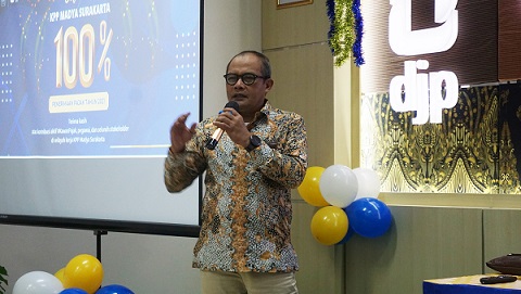 Kepala KPP Madya Surakarta Guntur Wijaya Edi mengucap syukur dan berterima kasih kepada seluruh stakeholder KPP Madya Surakarta yang telah berperan serta dalam pencapaian target penerimaan pajak tahun 2021.