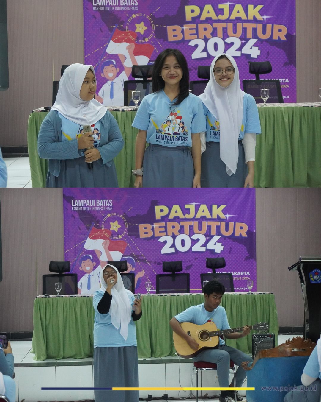 Kegiatan ini juga diramaikan dengan penampilan akustik oleh Regina Cahaya Ningrum dan M. Fachri selaku perwakilan siswa-siswi SMK Negeri 13 Jakarta dan gim berhadiah yang memacu kecerdasan dan ketangkasan. Kegiatan berakhir dengan dilakukannya sesi foto bersama, penyerahan plakat kepada SMK Negeri 13 Jakarta, dan penyeruan tagline Pajak Bertutur 2024: Sehari Mengenal, Selamanya Bangga!