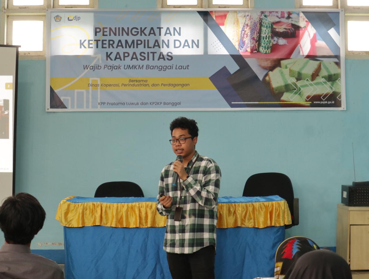 Kegiatan sosialisasi yang digelar di Aula KP2KP Banggai ini dihadiri dua puluh satu pemilik UMKM di wilayah Kabupaten Banggai Laut, Sulawesi Tengah. Selain dengan KPP Pratama Luwuk, acara ini juga berafiliasi dengan Dinas Koperasi, Perindustrian, dan Perdagangan Banggai Laut.