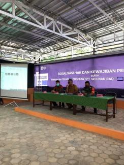 Kantor Pelayanan Pajak (KPP) Pratama Bontang mengadakan sosialisasi mengenai tata cara pengisian Surat Pemberitahuan (SPT) Tahunan Pajak Penghasilan (PPh) untuk Wajib Pajak Badan dan Orang Pribadi secara luring yang berada di Wisma PKK Kecamatan Muara Bengkal, Kab. Kutai Timur (Rabu, 10/8).